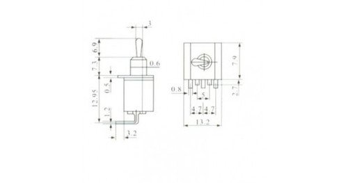 Informações sobre o produto: – Modelo MTS102-C3 = 3 terminais x 2 posições 90 Graus Solda Placa (LIGA / DESLIGA) – Chave de Alavanca Metálica – Comprimento da alavanca = 10mm – Corrente de trabalho = 4A em 125VAC e 2A em 250VAC
