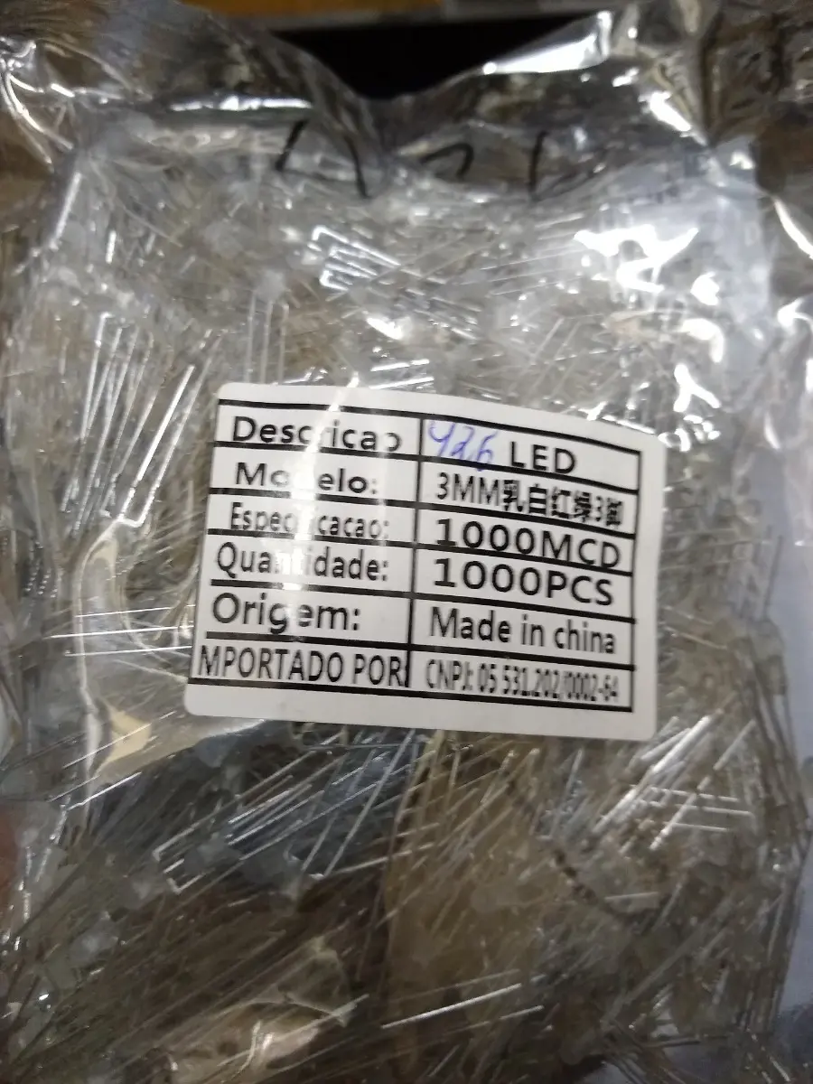 Kit 10 Peças – Led 3mm Bicolor Catodo Comum Vm/vd Leitoso 3 Terminais 2v Bicolor
