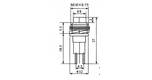 Vide imagem dos dados técnicos Chave Push Button DS-316 Sem Trava Características: Chave Tipo Push Button, Contato Momentâneo, NA 2 Terminais Corrente máxima: 0,5A Tensão Máxima: 250V Obs: Esta Chave é Semelhante A DS-314, Porém A DS-316 Tem A Rosca Na Parte De Baixo.