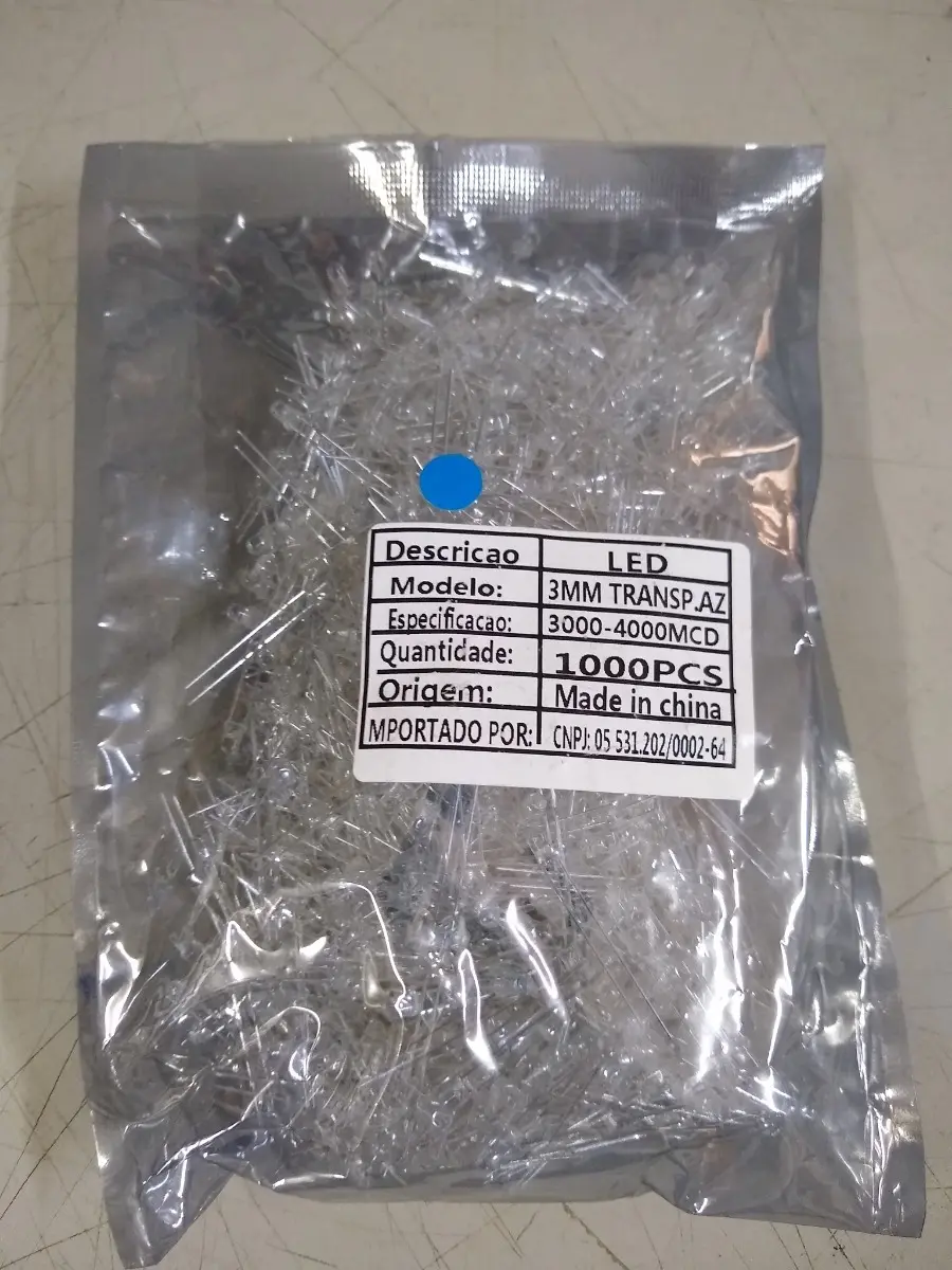 Kit 100 Peças – Led 3mm Alto Brilho Azul 3000-4000 Mcd