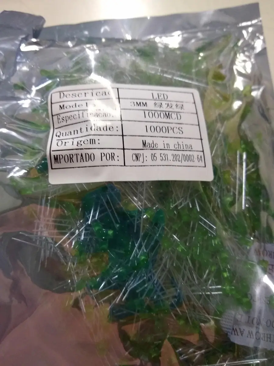 Kit 100 Peças – Led De 3mm Verde Difuso 2v Verde