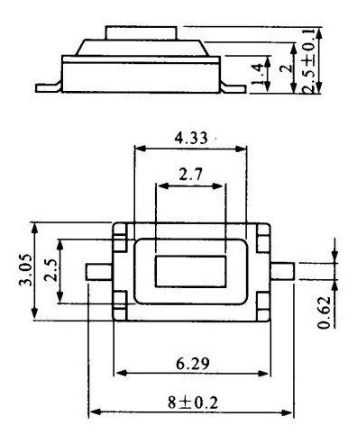 Vide imagem dos dados técnicos DESCRIÇÃO DO PRODUTO CHAVE TACTIL 3X6X2,5MM TERMINAIS: 2 PINOS SMD A GRANEL PACOTE COM 1000 PEÇAS