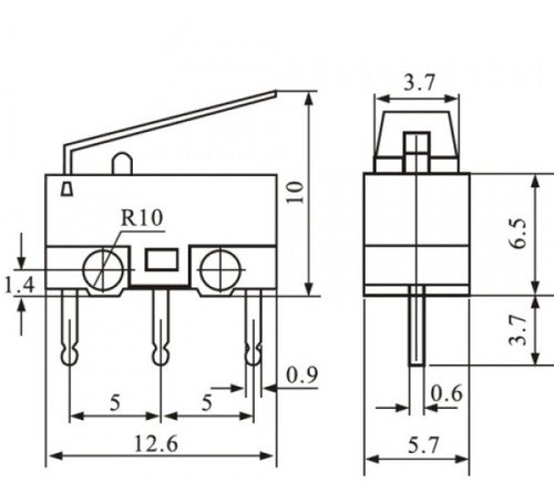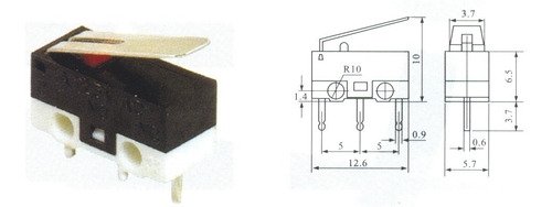 A chave fim de curso ou interruptor micro switch tem vasta aplicação industrial, comercial ou doméstico. É um item muito importante e que todo desenvolvedor deve saber utillizar. Pode ser usada para acionamento de portas, janelas, elevadores, refinarias, inspeção de cargas, etc… CARACTERÍSTICAS: Pólos: SPDT Tipo de ação: momentânea Tipo de contato: 1NA + 1NF Material: plástico e Metal Carga nominal AC: 2A 125 V Tamanho da alavanca (Aprox.): 13x4mm/0.5 ” x 0.2 ” (comprimento * largura) Largura do Pino(Aprox.): 0.7mm/0.03 ” Tamanho (Aprox.): 12x6x13mm/0.5 ” x 0.2 ” x 0.5 ” (comprimento * largura * altura) Cor: preto, branco, vermelho