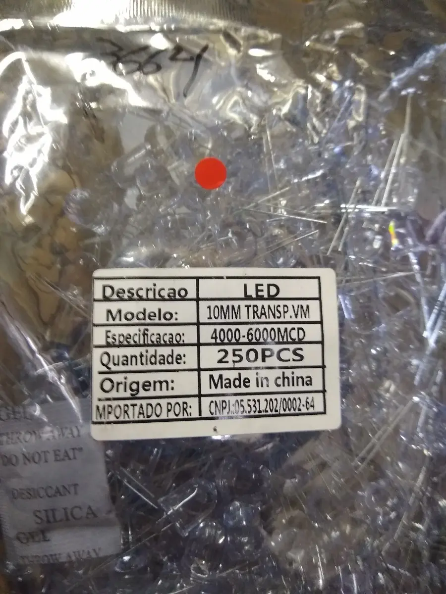 Kit 250 Peças – Led 10mm Alto Brilho Vermelho 4000-6000mcd