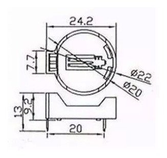 SUPORTE HORIZONTAL PARA BATERIA TIPO MOEDA CR2032 / CR2025 / CR2016
