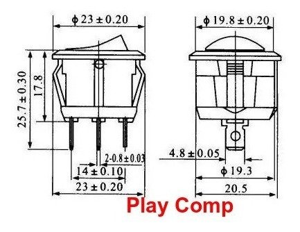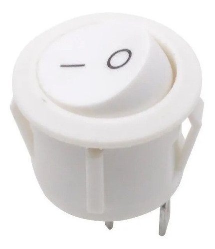Vide imagem dos dados técnicos Especificações técnicas: Chave Gangorra Branca Redonda – 2 Terminais – PL1-106 On/Off – 6A / 250 VAC – 10A / 125VAC