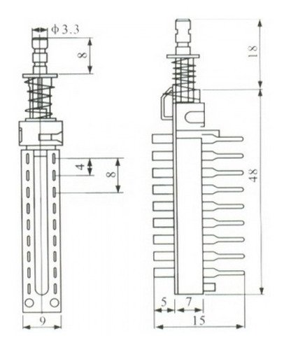 OBS: DIMENSÕES NA SEGUNDA FOTO DO ANÚNCIO A Chave Tecla KZJ-2×6 com Trava 18 Terminais é um pequeno interruptor que pode ser utilizado para as mais diversas finalidades, principalmente para fazer acionamentos em equipamentos eletrônicos, projetos robóticos e projetos de automação residencial. Possui trava caso necessite manter uma determinada posição. Dados Técnicos: – 18 Terminais – Corrente Máxima: 0,5A – Tensão Máxima: 50V – Com Trava
