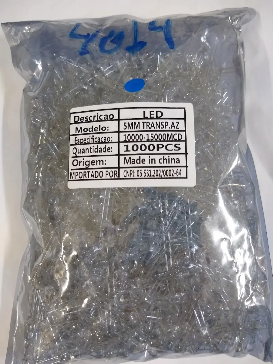 Kit 500 Peças – Led Alto Brilho 5mm Azul Transp 10000-15000mcd