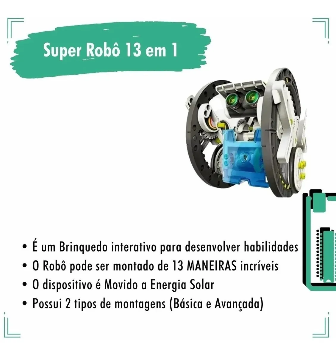 Kit Montagem Robo Solar 13×1 Iniciante Educacional Robótica