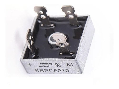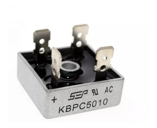 PONTE RETIFICADORA KBPC5010 DADOS TÉCNICOS CORRENTE MÁXIMA: 50A VOLTAGEM MÁXIMA APLICÁVEL: 1.000V ALTURA: 11mm (SEM TERMINAIS) ALTURA: 23mm (COM TERMINAIS) LARGURA E PROFUNDIDADE: 28mm TEMPERATURA OPERAÇÃO: -40 a + 100ºC FURO CENTRAL: 5MM PESO: 35 GRAMAS